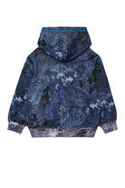 Sudadera hoodie con logo estampado en el pecho y motivo efecto usado. Prenda de estilo decidido, ideal para añadir un toque original al look diario.