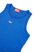 Top sin mangas de cuello redondo en jersey de canalé. Lleva un parche "D" aplicado en la parte delantera.