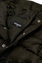 Chaqueta acolchada larga de nylon brillante con capucha. El logotipo de Dsquared2 en contraste a lo largo del cierre le da un toque icónico y reconocible al instante.