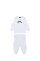 Chándal de punto elástico de algodón. Personalizado con ellogo ICON new generation en contraste de color. Camiseta de manga larga y cuello redondo con práctico cierre de botones en el hombro. Pantalón con ajuste elástico en la cintura y el tobillo. Incluye una bolsa con logo. Una prenda perfecta para un estilo de diario y para ocasiones más informales.