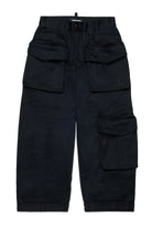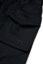 Pantalón cargo de gabardina con bolsillos multiusos y logotipo DSQ2 bordado tono sobre tono. Una prenda con un fuerte carácter, que combina funcionalidad y estilo.