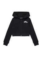 Sudadera recortada con capucha y de manga larga. Un modelo de corte moderno, con un bolsillo en el pecho en el lado del corazón y un logotipo en color de contraste que aporta personalidad a la prenda. Ideal para un look informal con mucho carácter.