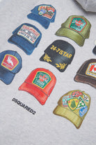 Sudadera con cremallera y capucha. El logo es frontal y en la parte trasera tiene un estampado de gorros.