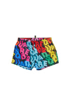 Bañador tipo bóxer con logo y estampado multicolor allover. El modelo presenta un diseño llamativo y moderno.