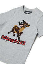 Camiseta de manga corta en suave jersey mélange. Presenta un estampado Fawn flocado en la parte delantera, acompañado del logotipo brillante de Dsquared2. Un gráfico con sabor a cuento de hadas que cautiva a primera vista.