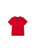 Camiseta de 100% algodón con logo Dsquared2 en el pecho. El modelo presenta mangas cortas y una práctica abertura con botones en el hombro.