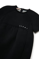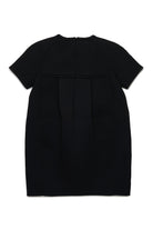 Minivestido de neopreno de media manga con diseño en forma de huevo. El fruncido en el busto con volantes crea un delicado juego de formas que realza la silueta. Una prenda contemporánea y original.