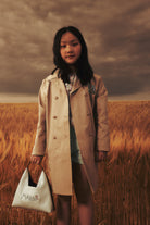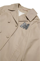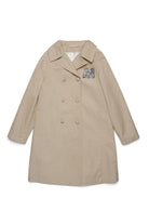 Chaqueta de manga larga con botonadura doble en gabardina. Parche con logotipo de "estrás" en la parte delantera, en el lado del corazón. Cierre de botón forrado. Bolsillos con ribete en la parte delantera. Hendidura en la espalda. Realizada en 100% algodón. Forro de viscosa.