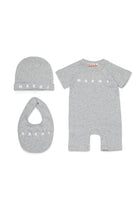 Set para recién nacido en 100% algodón con logo. Un kit compuesto por body, babero y gorro, diseñado para ofrecer practicidad y estilo con detalles gráficos en la parte delantera.