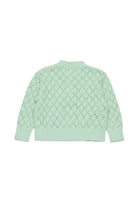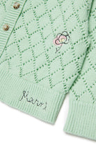 Cárdigan de 100% algodón con tejido calado en rombos y bordados florales. Un modelo de estilo original y detalles cuidados.