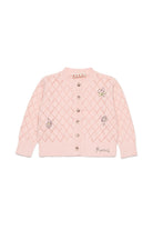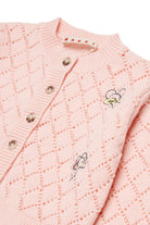 Cárdigan de 100% algodón con tejido calado en rombos y bordados florales. Un modelo de estilo original y detalles cuidados.