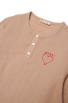 Camisa con logo bordado en el pecho en forma de corazón, caracterizada por mangas largas y cuello redondo.