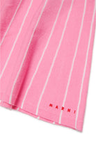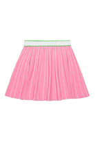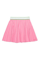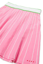 Minifalda de punto con rayas en mezcla de viscosa. Cintura elástica. Logotipo institucional bordado en contraste de color en la parte delantera.