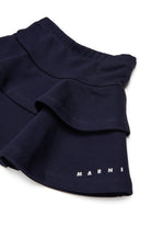 Falda con volantes de felpa perfecta para crear looks informales y deportivos. La cinturilla elástica garantiza la comodidad, mientras que el logo institucional estampado en el bajo le da un toque distintivo.