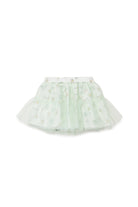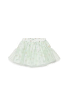 Falda corta de tul con motivo floral y detalles fruncidos para un efecto vaporoso.