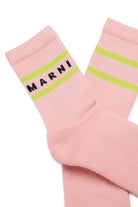 Calcetines con logo y rayas en contraste en el borde, ideales para añadir un toque distintivo a los conjuntos diarios.