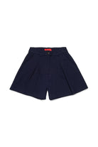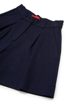Shorts con pliegues frontales de corte formal, caracterizados por trabillas en la cintura y parche con logo en la parte trasera.