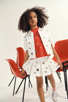 Minifalda con logo y estampado de lunares metalizados. Modelo plisado de diseño dinámico, ideal para completar looks divertidos.