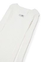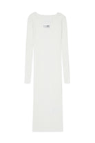 Vestido largo con logo y tejido acanalado. El modelo presenta una silueta esencial y líneas rectas para un look moderno.