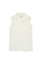 Chaleco con logo y emblemática costura en la parte trasera, caracterizado por solapa chal y bolsillos de vivo. Diseño esencial en tejido mixto de lana para un estilo refinado.