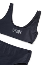 Bañador de licra con correas para los hombros. Numeric logo en contraste de color en la parte delantera y trasera. Interior forrado.