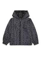 Chaqueta cortavientos de manga larga con estampado en toda la superficie Glitch. Capucha fija. Bolsillos con ribete delanteros. Cierre de cremallera frontal. Puños elásticos. Forro interior de malla.