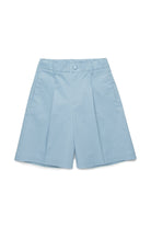 Shorts formales con logo de diseño limpio y lineal, caracterizados por pliegues frontales.