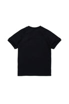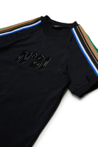Camiseta en suave jersey de algodón con bandas multicolores a lo largo de las mangas. El contraste entre el estampado brillante del logotipo y los detalles deportivos hace que la prenda sea perfecta para los looks de diario.