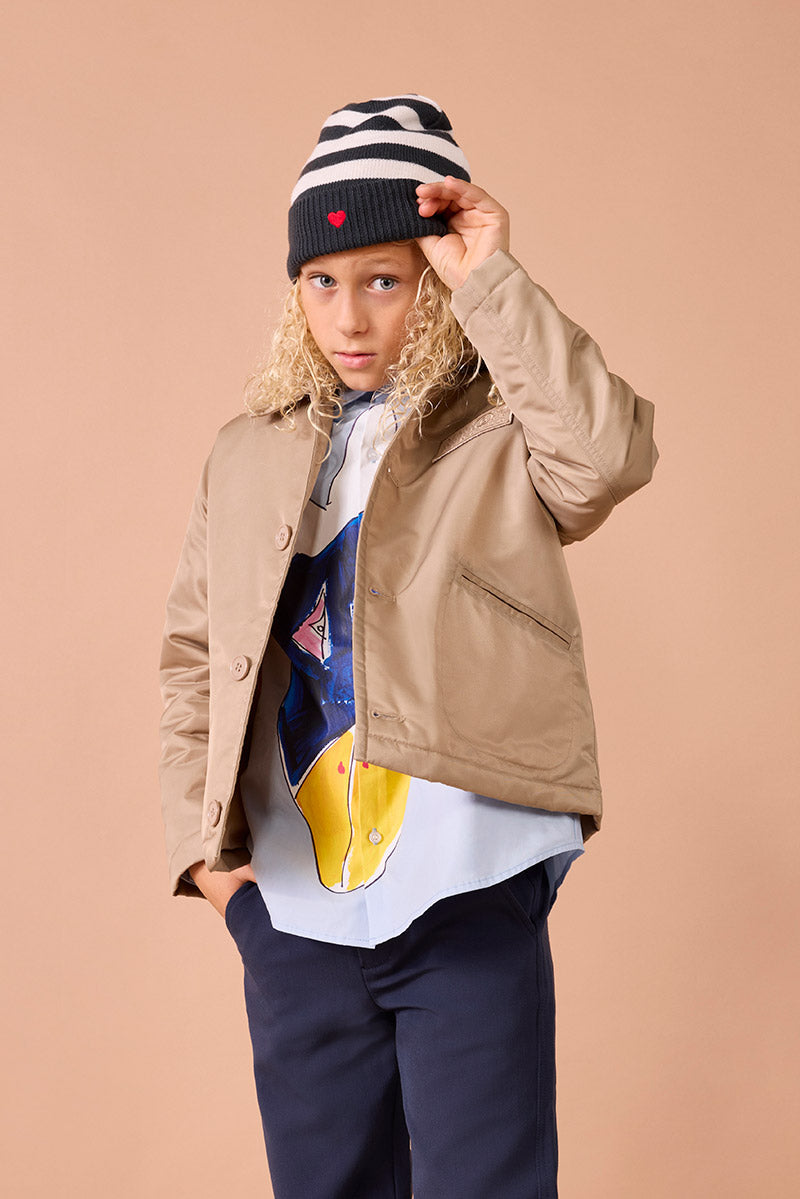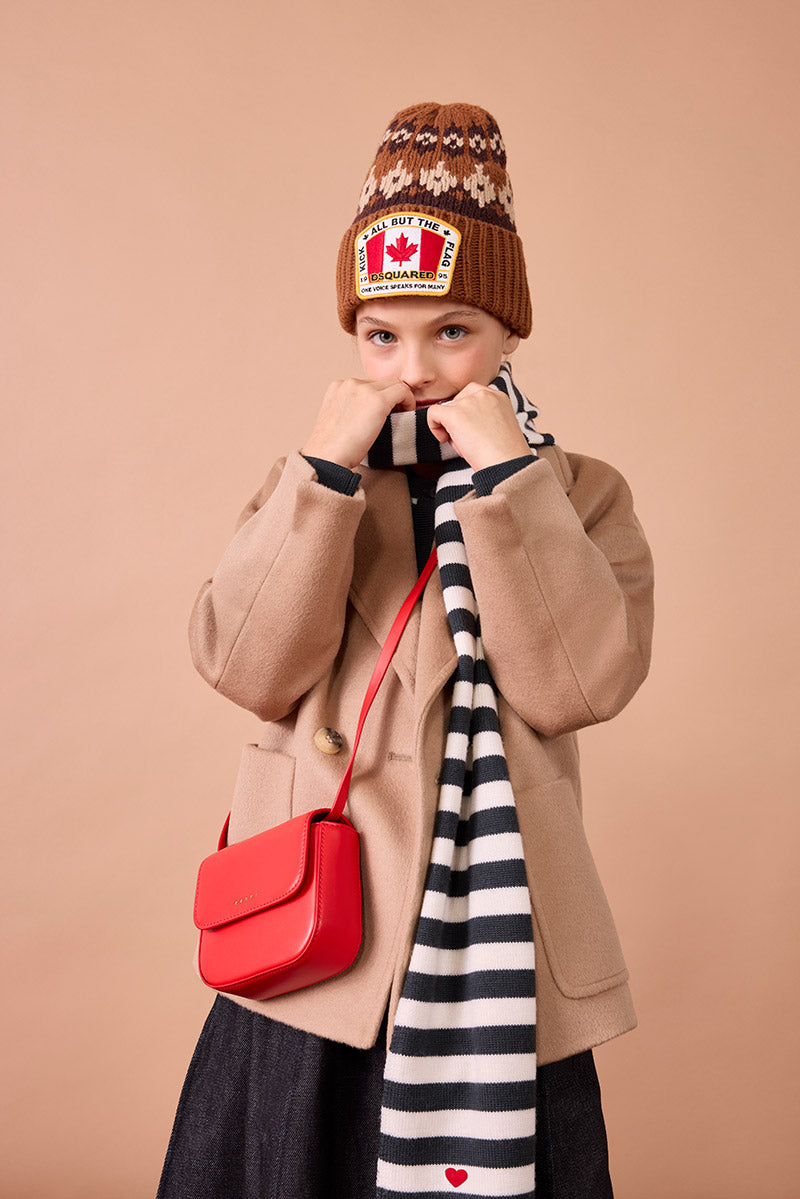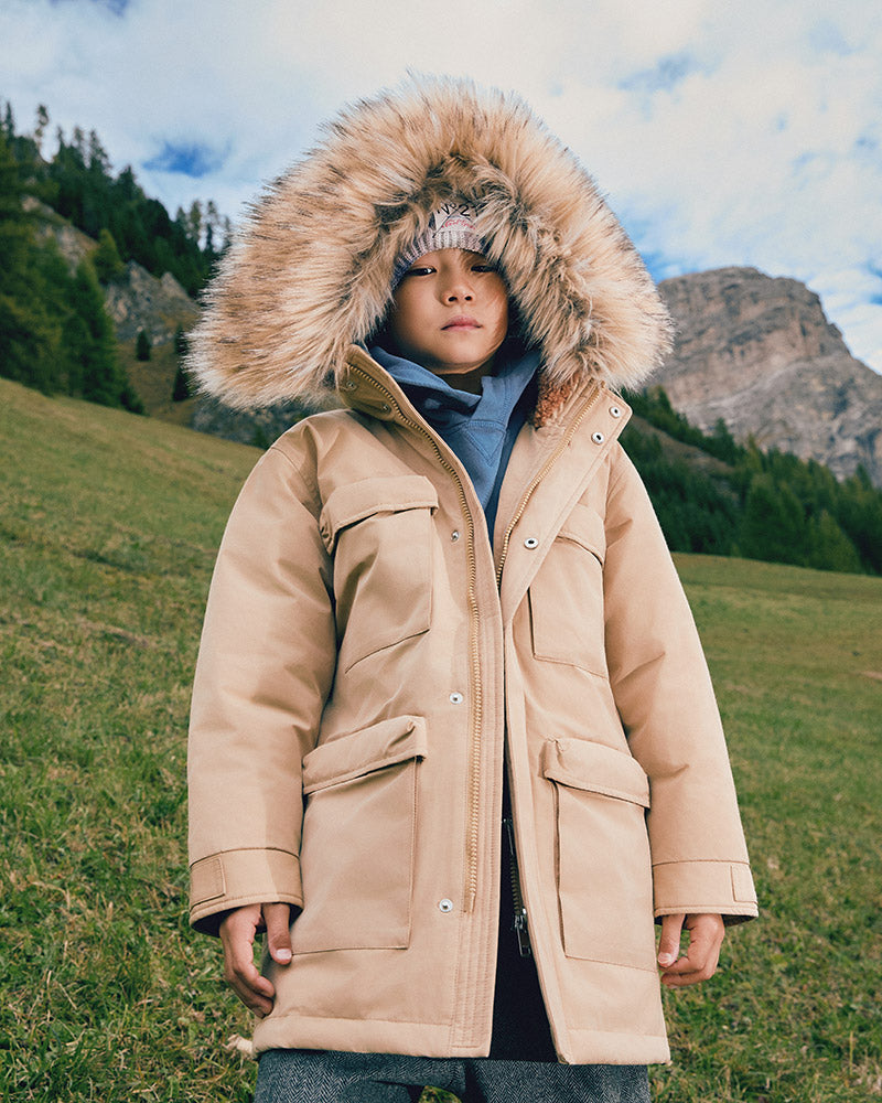 At our Merry Farm, children rediscover the joy of running free, laughing together, and cuddling alpacas and donkeys, dressed in warm, natural looks full of personality.