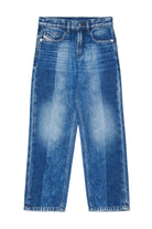 Relaxed jeans in medium blue denim effect with contrast stitching. Five-pocket design with label applied on the back.