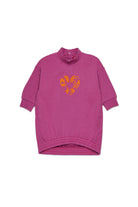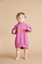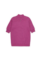 High-necked, long-sleeved maxi sweatshirt dress. The oval shape, emphasized by the elastic at the bottom, creates a voluminous and enveloping effect. Perfect for a casual outfit with a unique character.