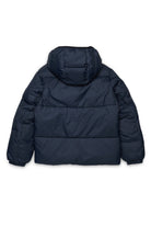 Padded jacket with hood and logo that combines thermal protection and clean design, made for facing cold days with practicality. The logo on the sleeve adds a distinctive detail.