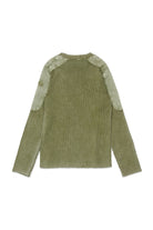 Crewneck pullover in 100% cotton with washed-effect inserts on the shoulders and sleeves.