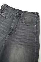 Denim shorts with a medium grey washed effect and contrast stitching for an authentic look.