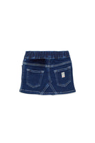 Denim skirt with applied logo and contrast stitching, featuring an elasticated waistband and five-pocket design.