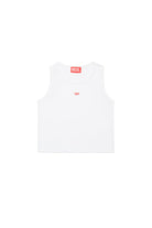 Sleeveless crew-neck top in ribbed jersey. Features an applied 'D' patch on the front.