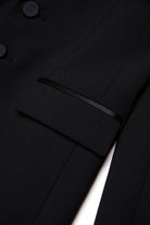 Long-sleeved stretch cool wool blazer jacket. Slim fit. Shiny tone lapels. Front button closure. Front flap pockets. Matching inner lining. A perfect garment for ceremonies and special occasions.