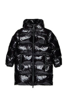 Long padded jacket with logo embossed Maple Leaf logo. Polished finish and contemporary design come together in a garment that wraps up the coldest days with warmth and character.