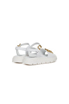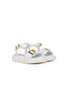 Platform sandals with belt. Personalised with D2 metal plate. Dsquared2 logo in contrasting colour on the insole. Calf leather upper and inner lining. Thermoplastic rubber platform sole. Made in Italy.