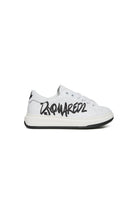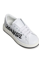 Low lace-up trainers with Dsquared2 branded glitter on the side. Maple Leaf on the back. Calf leather upper and inner lining. Thermoplastic rubber sole in contrasting colour. Made in Italy.