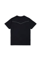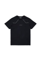 Soft cotton jersey short-sleeved T-shirt embellished with front-back applied studs. The rubberized Dsquared2 logo adds a distinctive touch for a gritty, on-trend look.