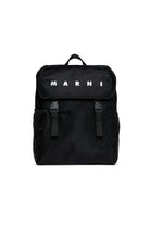 Statement backpack with a functional design perfect for days on the go. The contrasting color institutional logo on the flap adds character, while the outer pockets keep everything you need close at hand.