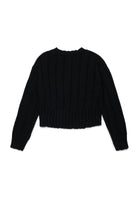 Cropped crew-neck long-sleeved pullover made of a rib knit wool blend. Localized breaks on the neck, sleeves and bottom give it a worn and authentic effect. Perfect for adding character to any look, even for special occasions.