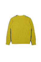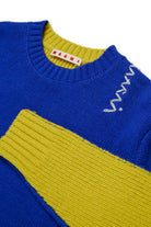Long-sleeved crew-neck pullover in wool blend, featuring an original colorblock design with contrasting construction: shaved knit on the front and ribbed knit on the back. The hand-embroidered Marni Handmade logo on the shoulder adds a handcrafted detail, enhancing the uniqueness and quality of the garment.
