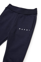 Fleece jogger pants with contrasting color institutional logo on the leg. An essential garment with a minimal and comfortable design, perfect for casual sporty style.