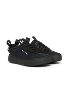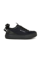 Sneakers with contrasting logo on the side and heel, featuring a minimalist design and technical fabric details.