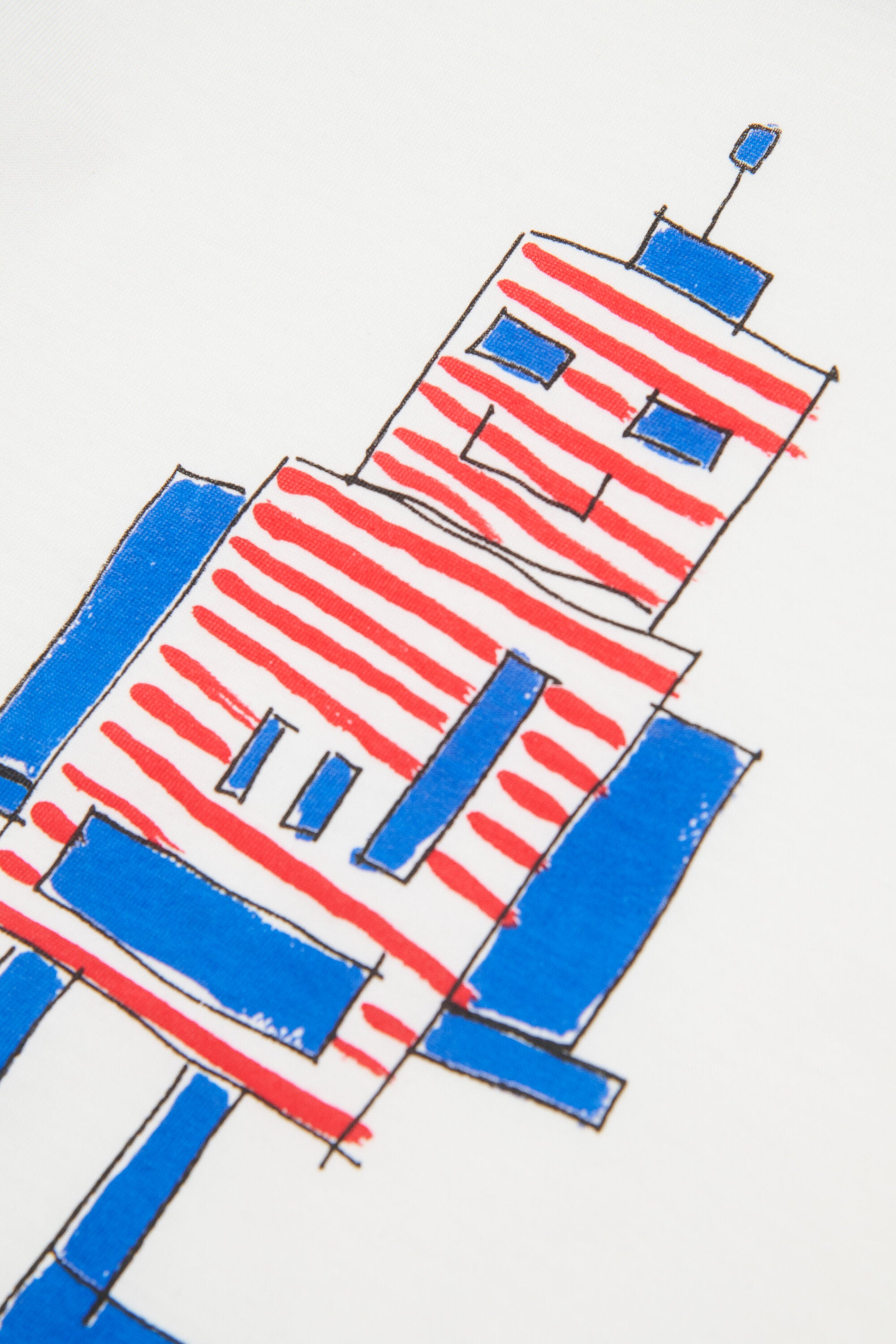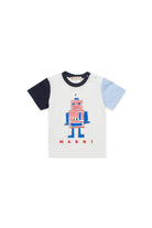 Soft cotton jersey short-sleeved T-shirt enhanced by the robot-themed Galaxy graphic on the front and institutional logo. The contrasting sleeves, in two different colors, add a lively note to this garment with a playful and contemporary spirit.