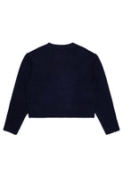Long-sleeve boxy pullover in wool-blend knit. Contrasting color embroidered logo on the neck and side slit give the garment a modern and recognizable look. Perfect for casual everyday looks.