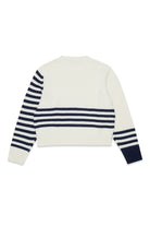 Long-sleeved wool-blend pullover. The play of asymmetrical stripes and side slits make this model an original choice, ideal for the colder months.