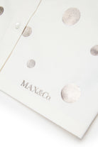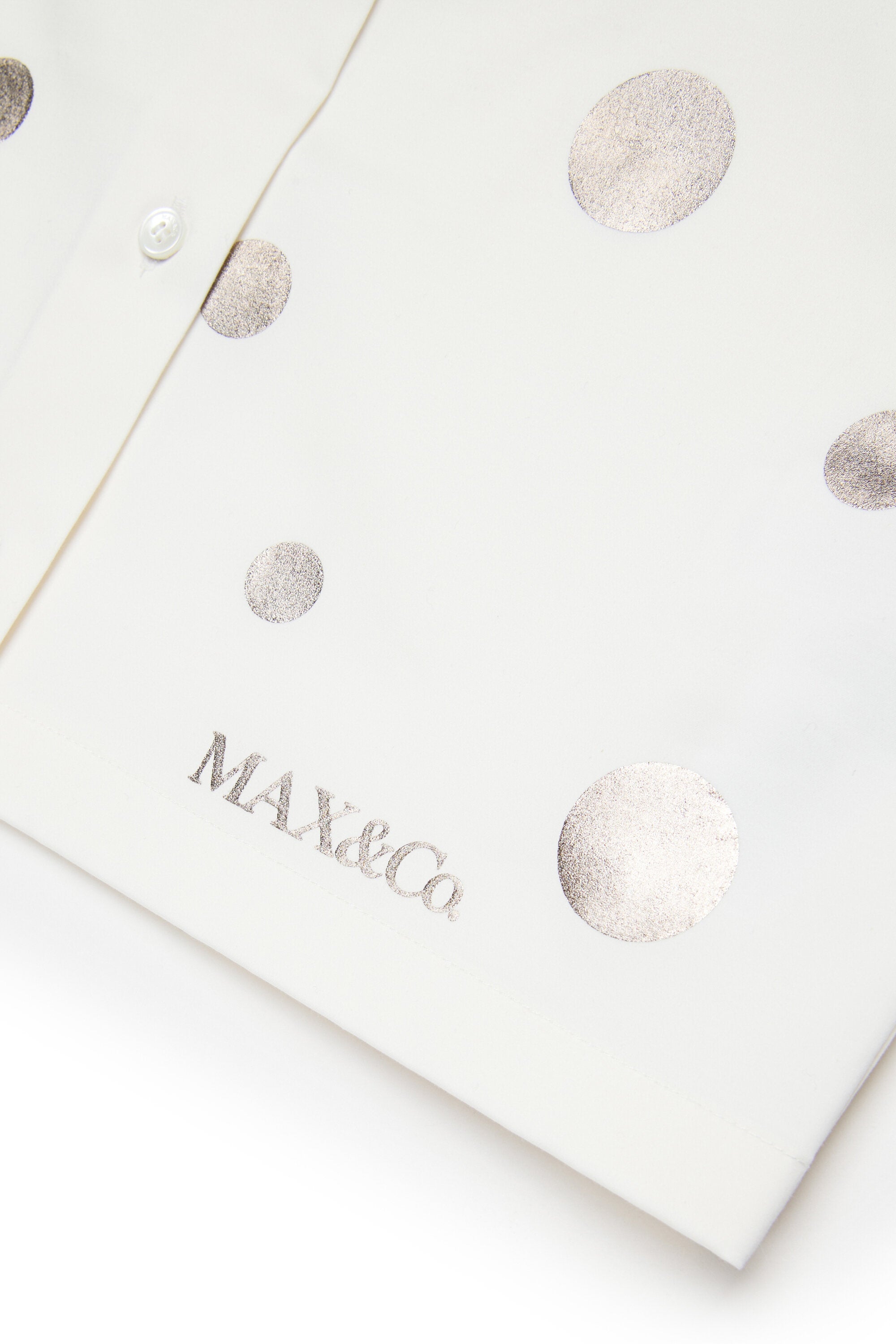 - Metallic polka dot pattern with MAX&Co. logo